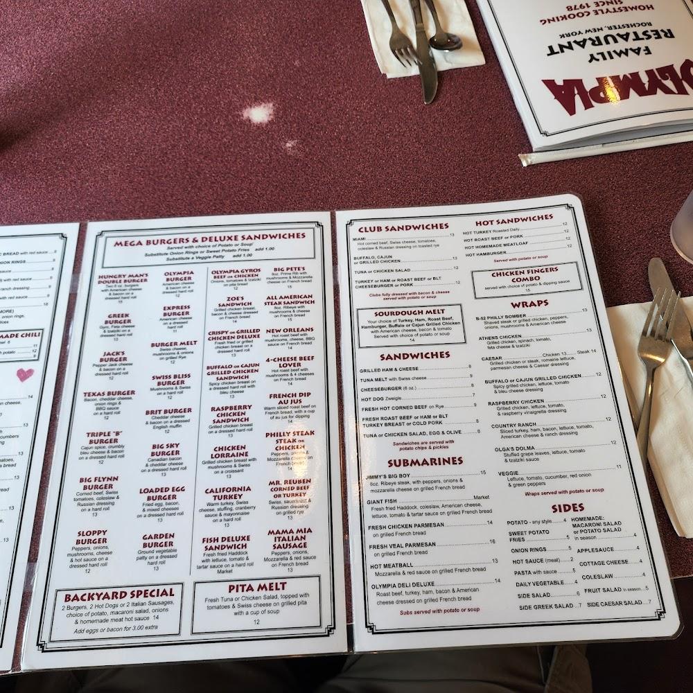 Welcome to Olympia Family Restaurant, your go-to diner in Rochester, NY, where great food and a friendly atmosphere combine to create a memorable dining experience. Enjoy our extensive breakfast, lunch, and dinner menus featuring local specialties, excellent coffee, and delicious desserts. With quick service and comfortable seating, it's a perfect spot for solo diners, families, and groups alike. We also offer takeout and delivery options for those on the go. Our accessible facilities ensure that everyone can join in on the fun. Visit us for a relaxed and enjoyable meal at a wallet-friendly price!